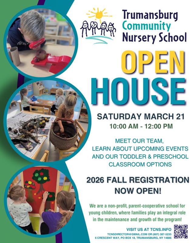 Join us on March 21st for our Open House. See our beautiful toddler and preschool classrooms, meet our teachers, and learn more about our program. This is a great opportunity to ask questions and check out what TCNS has to offer your family.